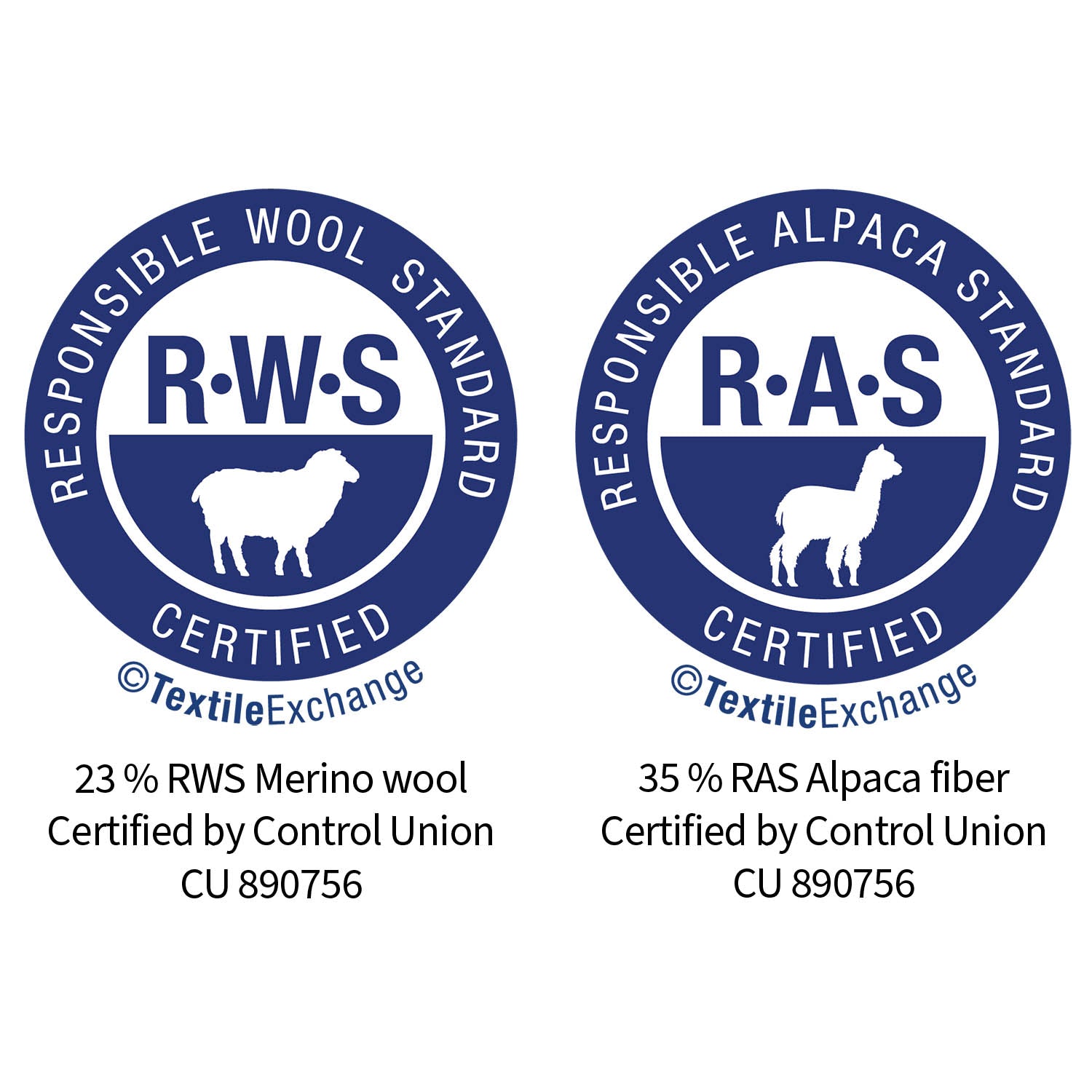 Das Garn besteht aus 35% RAS-zertifizierter Alpakawolle und 23% RWS- zertifizierter Wolle, (CU 890756) . Produkte, die entsprechend dem Responsible Alpaca Standard (RAS) und Responsible Wool Standard (RWS) zertifiziert sind, enthalten Alpakawollfasern und Wollfasern von Farmen, die unabhängig entsprechend den Tierschutz- und Landbewirtschaftungsauflagen zertifiziert sind.